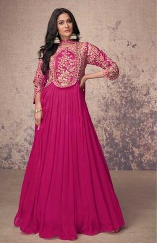 Designed for comfort and style, this designer gown is perfect for weddings, receptions, festive celebrations, and party wear. The combination of a Pink hue with silver embellishments makes it a statement piece for women who love standing out in elegance. Pair it with statement earrings, bangles, and high heels for a glamorous festive look.