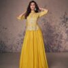 Aroma designer Indo Western gown in vibrant yellow