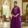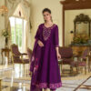 Silky Purple Designer Dress – Embroidered Crop Top with Palazzo & Jacket