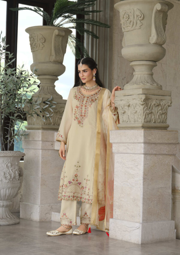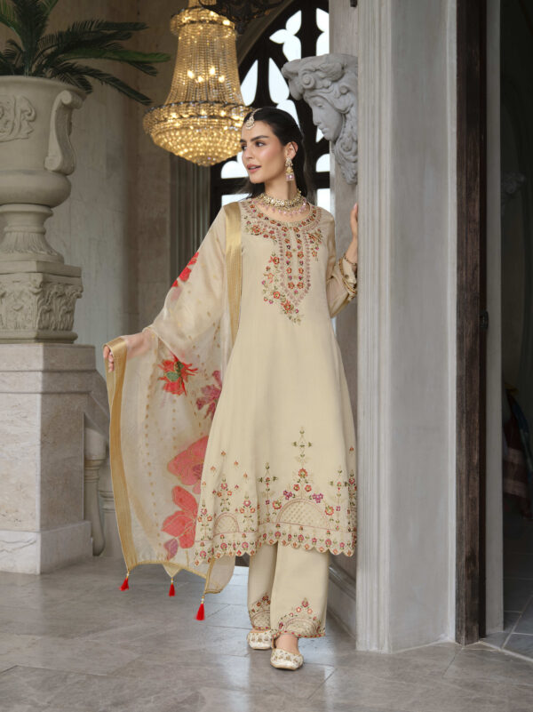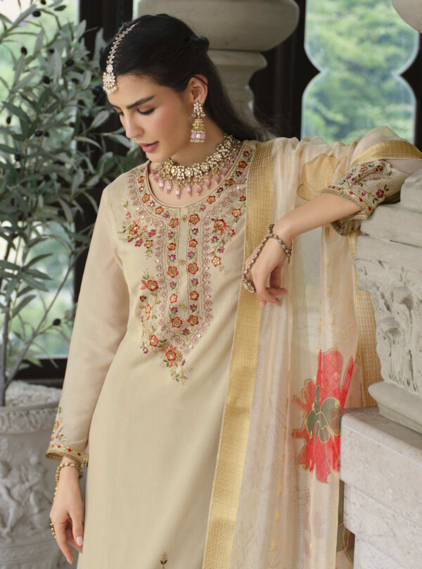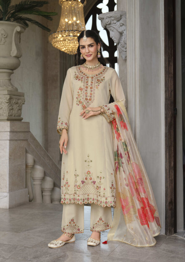 Designed for a modern yet traditional look, the Beige Sarvari Suit pairs beautifully with matching dupatta and ethnic jewelry. Available in multiple sizes, it ensures a perfect fit for all body types and is easy to maintain. Whether attending a wedding, festival, or special occasion, this designer ethnic suit ensures you stand out with grace and style.
