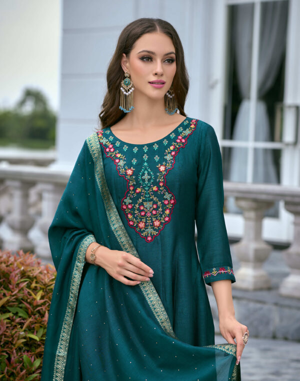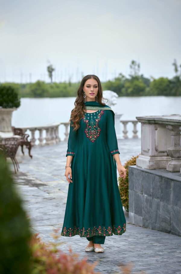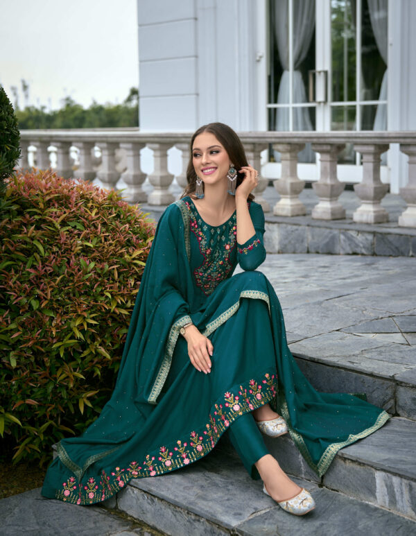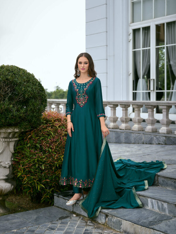 Bibbojaan Teal Green Embroidered Suit