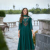 Aroma Dark Green Indo Western Gown with Silver Embroidery & Designer Flair