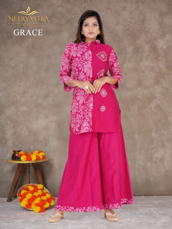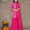 Dark Pink floral kurta with matching palazzo pants, crafted from breathable cotton for all-day elegance and effortless charm.