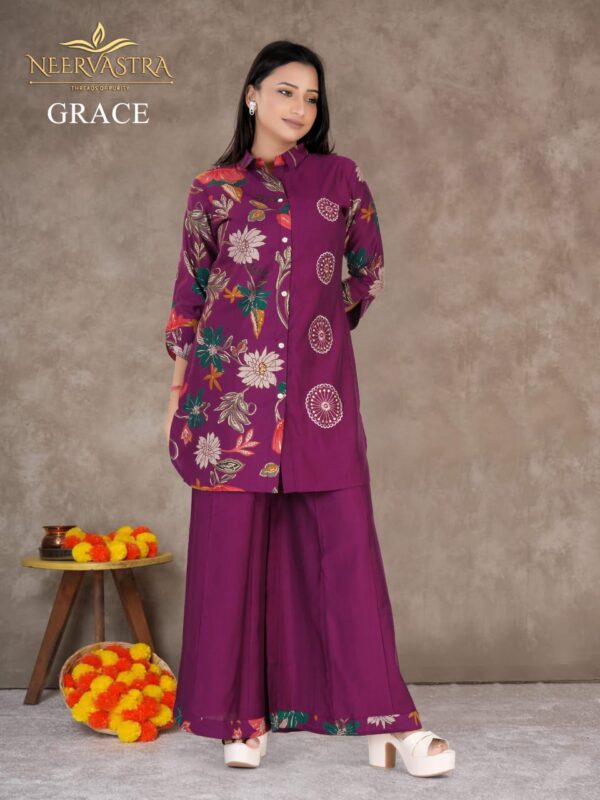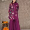 Dark Purple floral kurta with matching palazzo pants, crafted from breathable cotton for all-day elegance and effortless charm.