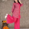 Chic Pink floral kurta with matching palazzo pants, crafted from breathable cotton for all-day elegance and effortless charm.