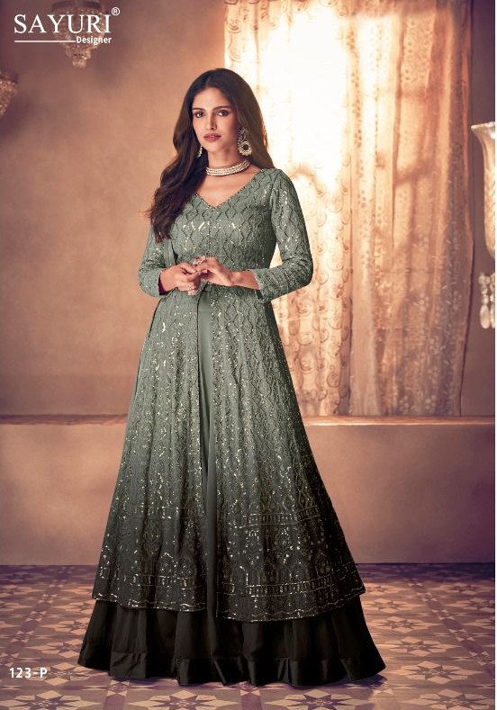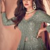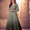 Embrace modern elegance with this stunning Indo Western Anarkali gown in a sophisticated shade of Dark Green. Designed with a flattering V-neckline and full sleeves, the outfit is beautifully adorned with intricate sequin embroidery that adds a luxurious sparkle. The floor-length flared silhouette with a layered hemline gives a royal touch, making it ideal for weddings, receptions, cocktail parties, and festive celebrations.