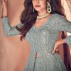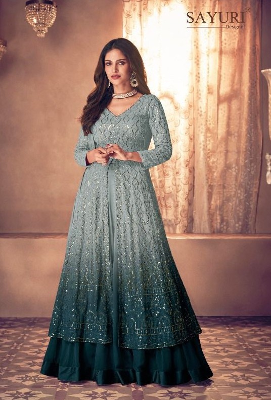 Embrace modern elegance with this stunning Indo Western Anarkali gown in a sophisticated shade of Dark Slate Gray. Designed with a flattering V-neckline and full sleeves, the outfit is beautifully adorned with intricate sequin embroidery that adds a luxurious sparkle. The floor-length flared silhouette with a layered hemline gives a royal touch, making it ideal for weddings, receptions, cocktail parties, and festive celebrations.