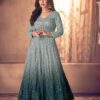 Step into style with this elegant Dark Slate Gray Indo Western Anarkali gown featuring intricate sequin work, full sleeves, and a floor-length flared silhouette. Perfect for weddings, parties, and festive occasions.