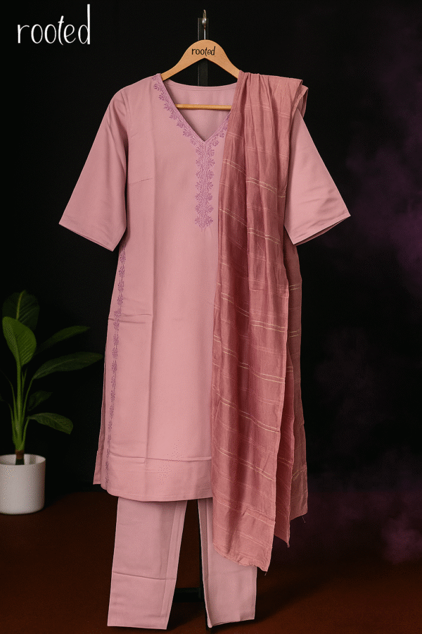 Elegant Pink Embroidered Glace Cotton Suit Set with Dupatta – Rooted Collection