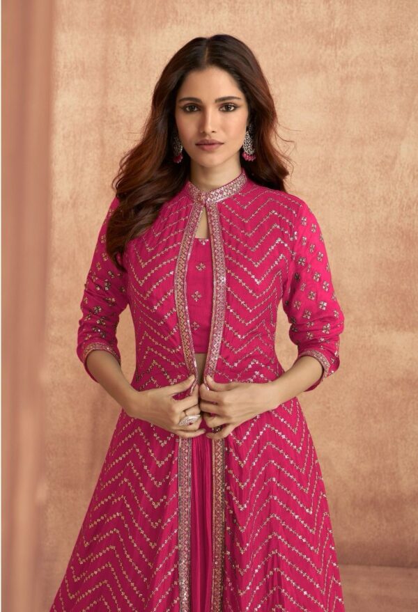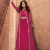 Elevate your style with this elegant French Wine Indo Western impression dress, featuring a designer long jacket, embellished details, and a flowy skirt – perfect for weddings, parties, and festive celebrations.