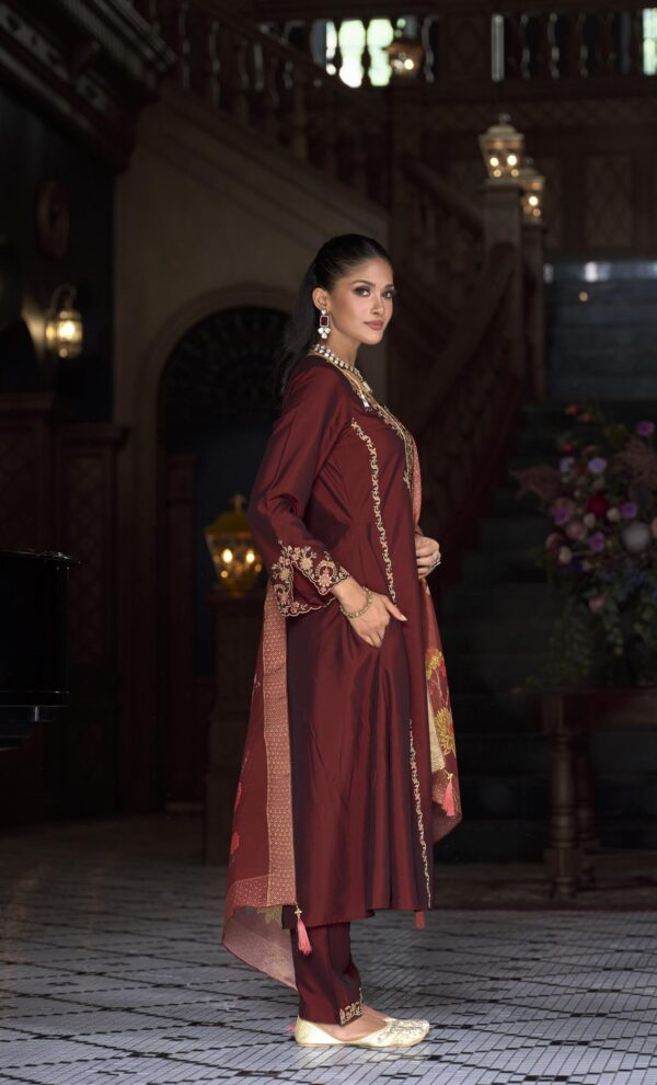 The Malkana Mahroon suit collection by Lily & Lali brings together elegant craftsmanship and modern design. Perfect for festive occasions, parties, and celebrations.