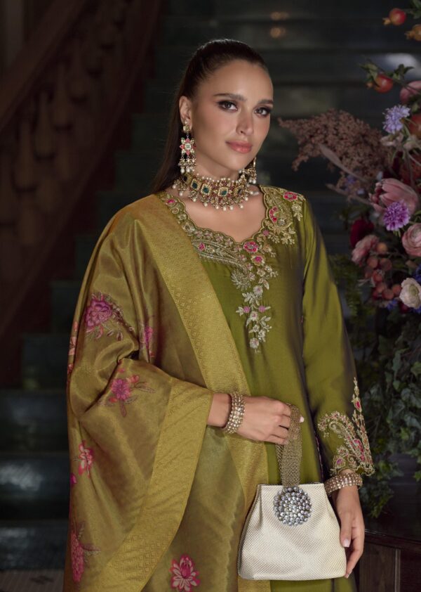 The Malkana Mustard Green suit collection by Lily & Lali brings together elegant craftsmanship and modern design. Perfect for festive occasions, parties, and celebrations.
