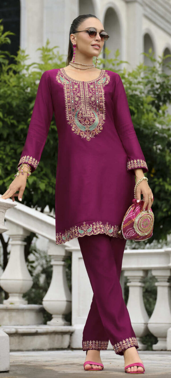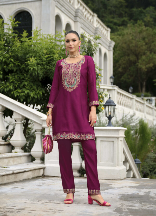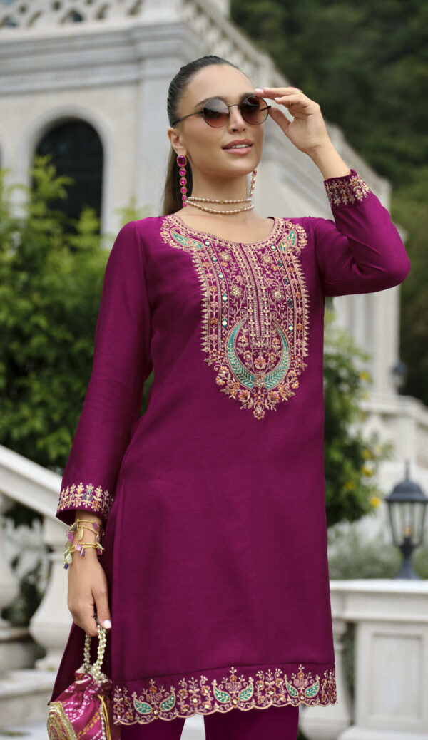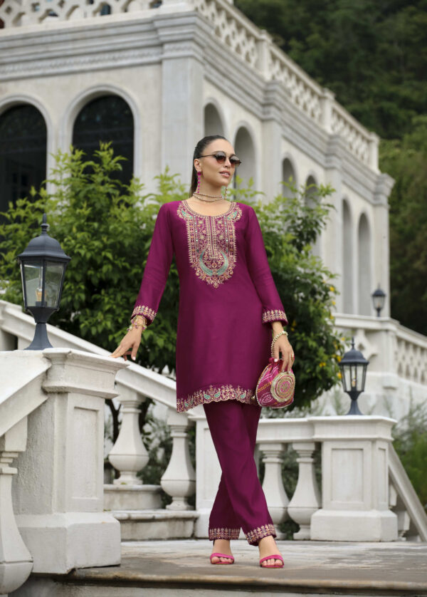 Redefine your wardrobe with the sophisticated Magenta Anora Co-ord Set for Women. This premium two-piece outfit features a coordinated top and bottom designed for a flattering fit and all-day comfort. Crafted from high-quality fabric, it combines modern cuts with elegant detailing, making it suitable for both festive occasions and casual outings.