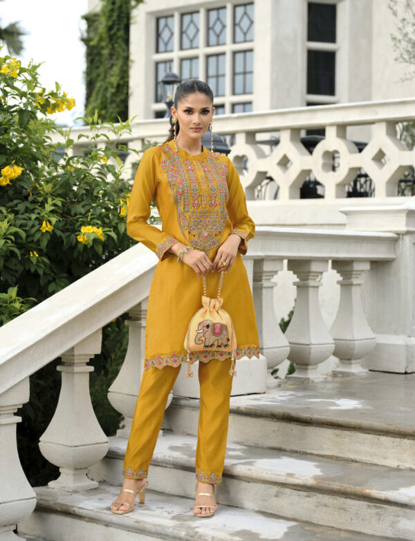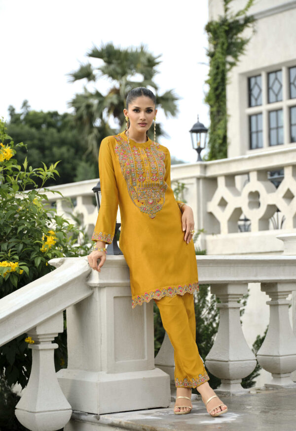 Redefine your wardrobe with the sophisticated Mustard Anora Co-ord Set for Women. This premium two-piece outfit features a coordinated top and bottom designed for a flattering fit and all-day comfort. Crafted from high-quality fabric, it combines modern cuts with elegant detailing, making it suitable for both festive occasions and casual outings.