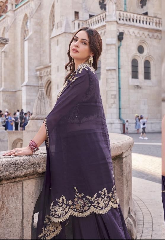 Adding to its grandeur, the outfit comes with a delicately scalloped cape drape, embellished with heavy zari and resham embroidery, giving you an ethereal and graceful silhouette. The lightweight fabric ensures comfort, while the exquisite detailing makes it ideal for weddings, sangeet nights, receptions, cocktail parties, and festive gatherings.