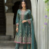 Sajni Dark Green 3-Piece Embroidered SuitSajni Dark Green 3-Piece Embroidered Suit