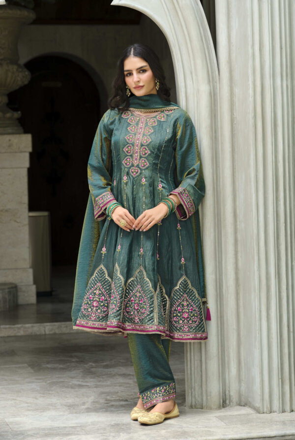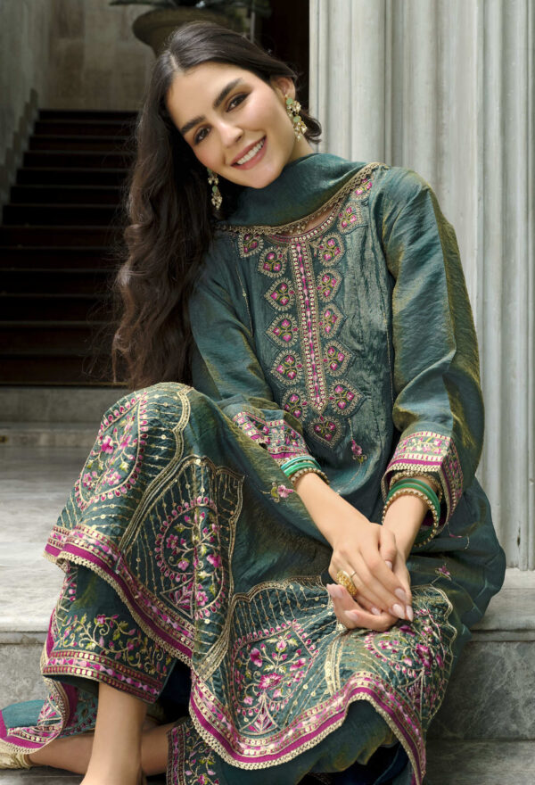Sajni Dark Green 3-Piece Embroidered Suit