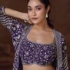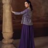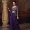 Silky Purple Designer Dress – Embroidered Crop Top with Palazzo & Jacket