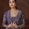 Ideal for weddings, cocktail parties, receptions, and festive celebrations, this Indo Western dress is a versatile choice for statement-making fashion. The luxurious purple shade and silky texture make it an eye-catching outfit for modern women who prefer designer party wear, Indian fusion dresses, and embroidered Indo Western outfits. Pair with elegant jewelry and heels to complete the look.