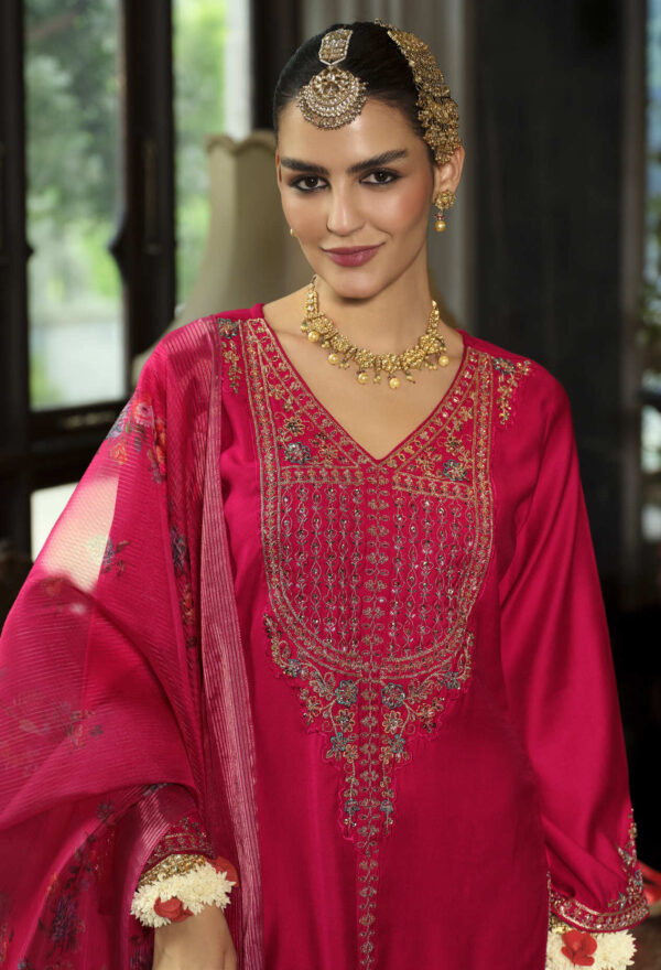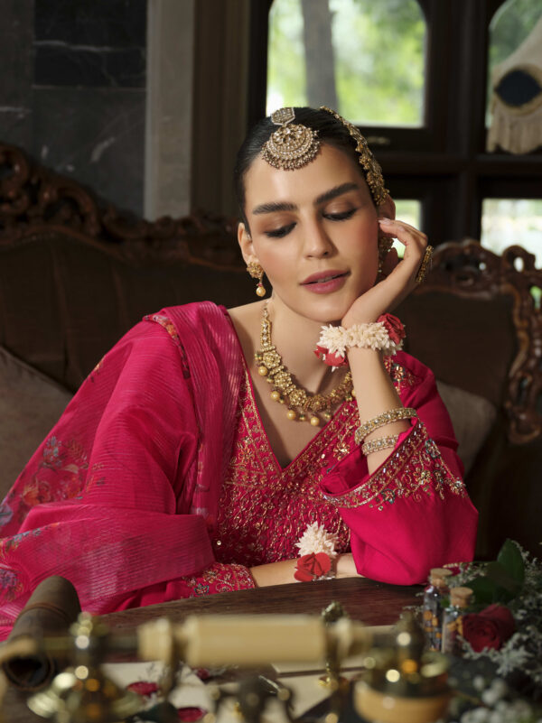 Bring home this designer Sindoor 3-piece suit and embrace the perfect blend of luxury and tradition.