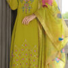 Aroma Yellow Indo Western Gown with Silver Embroidery & Designer Flair