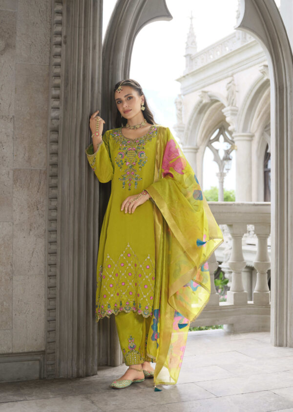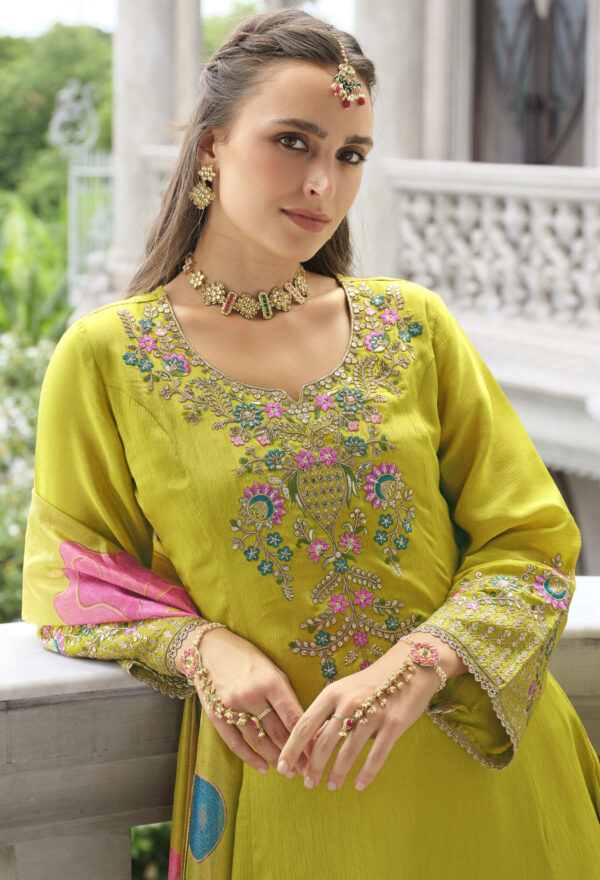 Deepika Designer Green Silk Suit with Handwork & Floral Print Dupatta
