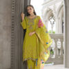 Designed for a modern yet traditional look, the Yellow Sarvari Suit pairs beautifully with matching dupatta and ethnic jewelry. Available in multiple sizes, it ensures a perfect fit for all body types and is easy to maintain. Whether attending a wedding, festival, or special occasion, this designer ethnic suit ensures you stand out with grace and style.